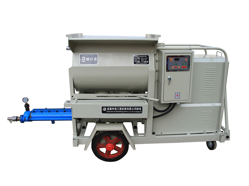 該泵結(jié)構(gòu)新穎、構(gòu)思獨特;避免了灌注稠漿較困難的不足,使用安全方便、效率高。本機主要由攪拌機構(gòu)、增壓機構(gòu)及電控系統(tǒng)等組成,其特點如下: